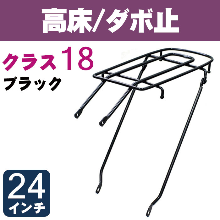 ⇒リアキャリアの選び方【商品名】リアキャリア 高床タイプ ダボ止めタイプ クラス18【商品分類】自転車用品、サイクル用品、自転車グッズ、サイクルグッズ、自転車用キャリア、リアキャリア、リヤキャリア、荷台【品番】RC-6【カラー・素材】ブラック(黒)【対応インチ】24インチ(24型)【対応車種】フレームにダボ穴(キャリア取り付け穴)があいている自転車。