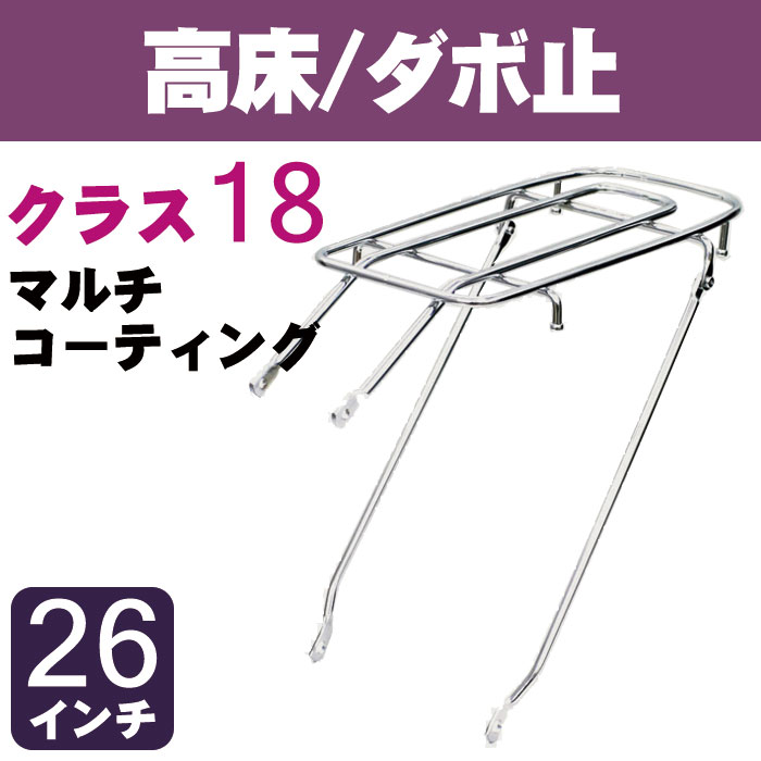 ⇒リアキャリアの選び方【商品名】リアキャリア 高床タイプ ダボ止めタイプ クラス18【商品分類】自転車用品、サイクル用品、自転車グッズ、サイクルグッズ、自転車用キャリア、リアキャリア、リヤキャリア、荷台【品番】RC-6 26 SE【カラー・素材】マルチコーティング【対応インチ】26インチ(26型)【対応車種】フレームにダボ穴(キャリア取り付け穴)があいている自転車。