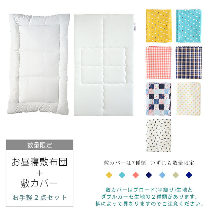 ・園児用敷布団(洗濯可) サイズ:約70×120×5cm 側生地:ポリエステル65% 綿35% 中わた:ポリエステル100%(約500g) ※二つ折り・三つ折り可能 ・赤ちゃん用敷布団(洗濯可) サイズ:約70×120×2.5cm 側生地:ポリエステル65%・綿35% 中わた:固綿ポリエステル100% ※二つ折り・三つ折り可能 ■カバーの柄をお選びください ・お昼寝敷カバー(サイドファスナー) サイズ:約72×123cm 生地:綿100% ※片面に生地の繋ぎ部分がございます。